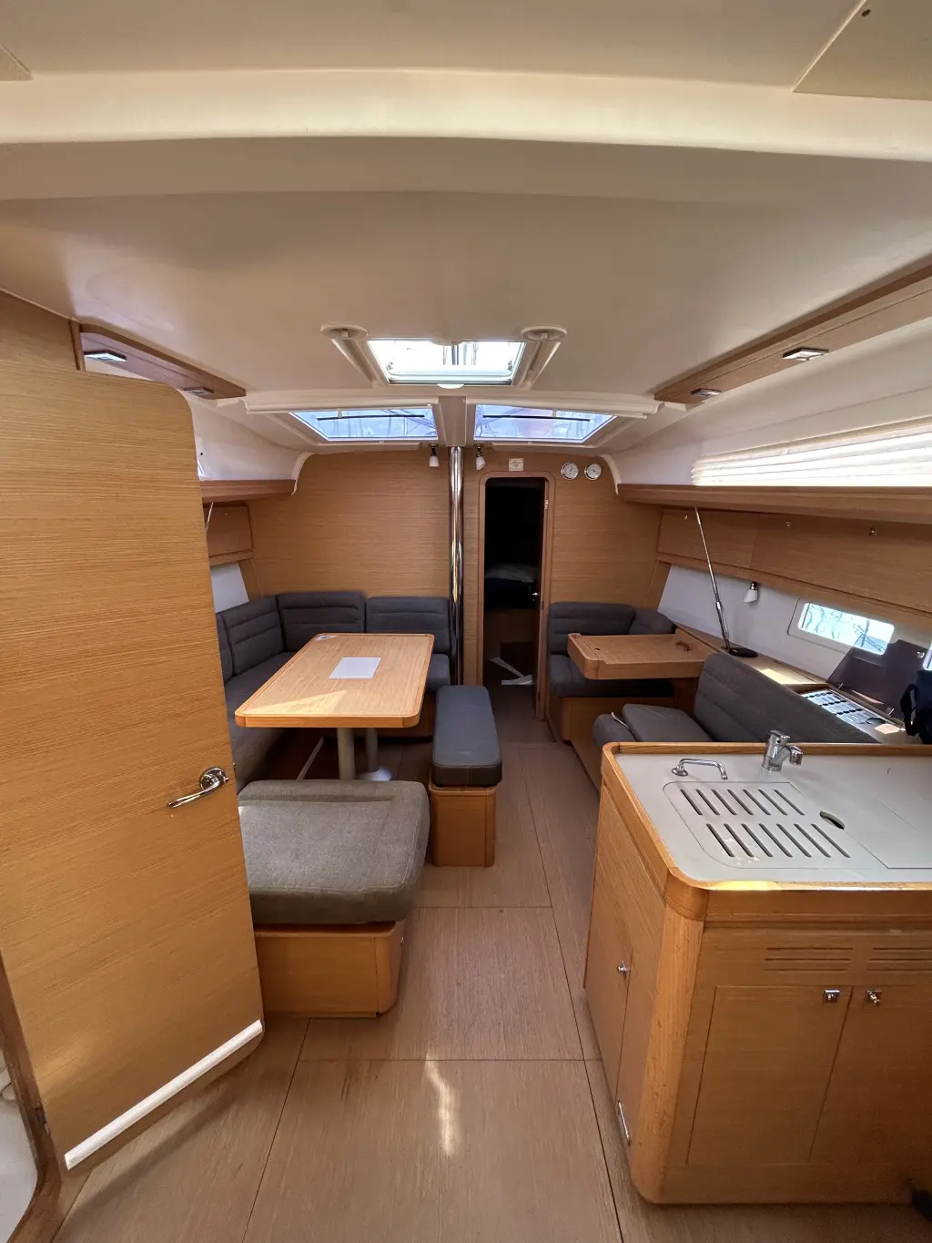 Folding saloon table with extra cushion for additional berth in saloon