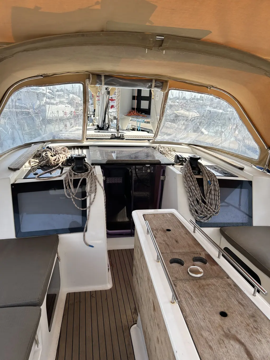 Hot water shower in cockpit