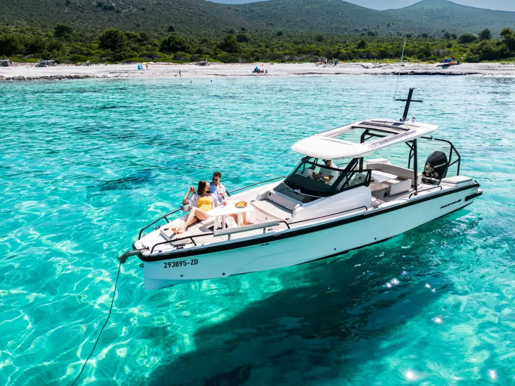 Яхтата Axopar 29 е модел Axopar 29 Sun Top произведена от Axopar през 2025. Тя е чудесен избор и се дава под наем от Zaton Holiday Resort в района на Хърватска. Axopar 29 разполага с 1 каюти и е подходяща за до 9 гости, заедно с екипажа. Дължината и е 9.31 метра и гази 0.9 метра. Axopar 29 разполага с комерсиален лиценз и се оперира професионално от чартърната компания Ti-Lu Charter.