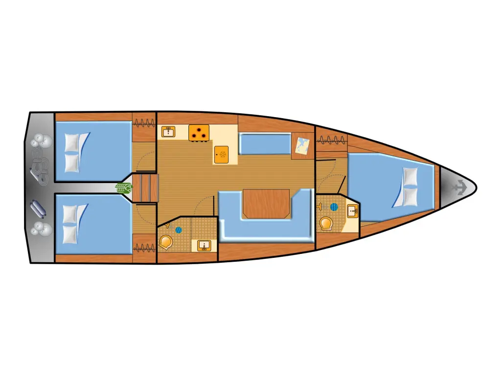 Halyard winches 2 pieces, fenders 6-8 pieces, mooring ropes 4 pieces (30 m)