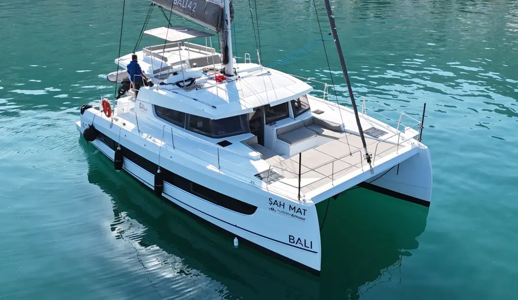 Яхтата Sah Mat е модел Bali 4.2 произведена от Bali Catamarans през 2023. Тя е чудесен избор и се дава под наем от Yacht Club Mai в района на Турция. Sah Mat разполага с 3 каюти и е подходяща за до 6 гости, заедно с екипажа. Дължината и е 12.85 метра и гази 1.22 метра. Sah Mat разполага с комерсиален лиценз и се оперира професионално от чартърната компания Rudder and Moor.