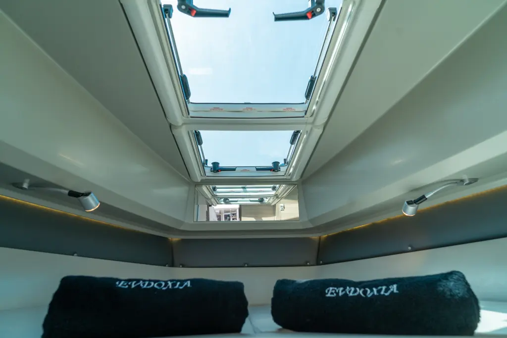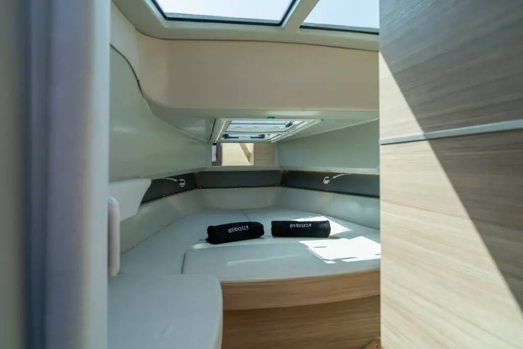 Яхтата Evdoxia е модел Saxdor 320 GTC произведена от Saxdor Yachts през 2023. Тя е чудесен избор и се дава под наем от Agios Kosmas Marina в района на Гърция. Evdoxia разполага с 1 каюти и е подходяща за до 2 гости, заедно с екипажа. Дължината и е 10.28 метра и гази 1.04 метра. Evdoxia разполага с комерсиален лиценз и се оперира професионално от чартърната компания Evdimal Yachting.