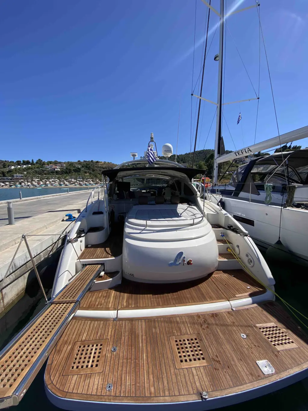 Яхтата Lia е модел Azimut Atlantis 55 произведена от Azimut Yachts през 2007. Тя е чудесен избор и се дава под наем от Marina Miraggio в района на Гърция. Lia разполага с 3 каюти и е подходяща за до 6 гости, заедно с екипажа. Дължината и е 16.7 метра и гази 1.43 метра. Lia разполага с комерсиален лиценз и се оперира професионално от чартърната компания John Enzzo Cruises.