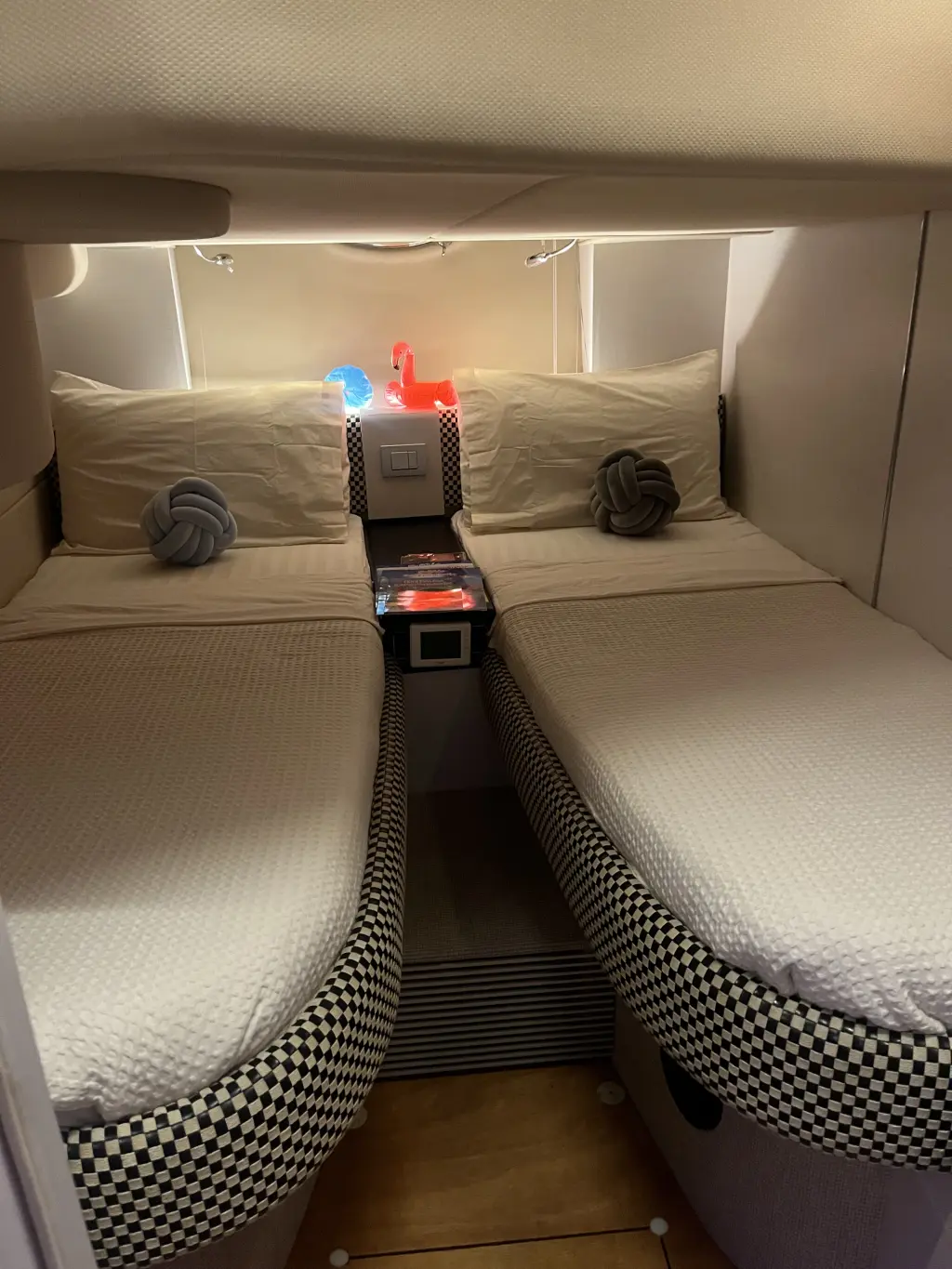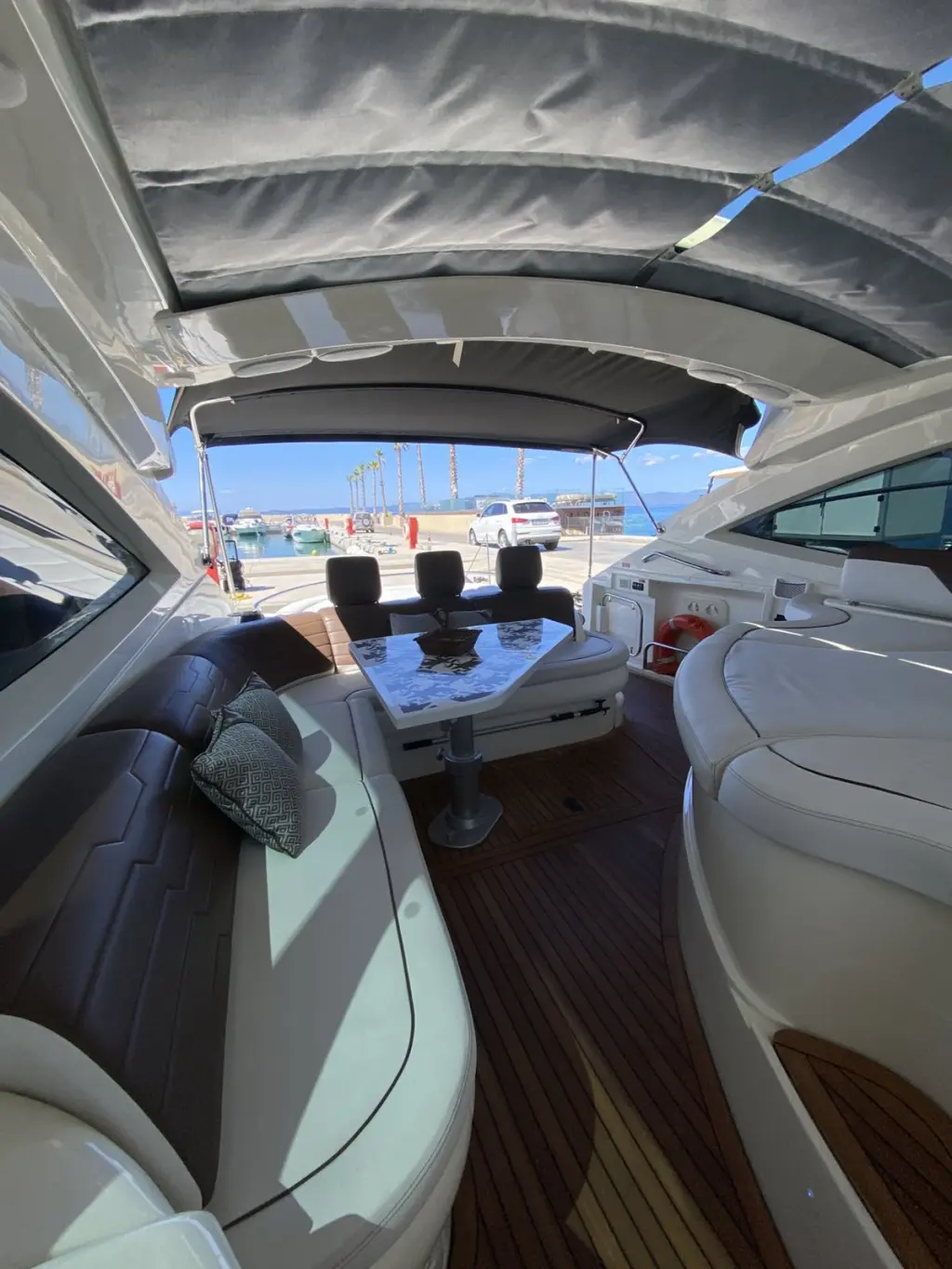 Sun cushions in stern, bow and in cockpit
