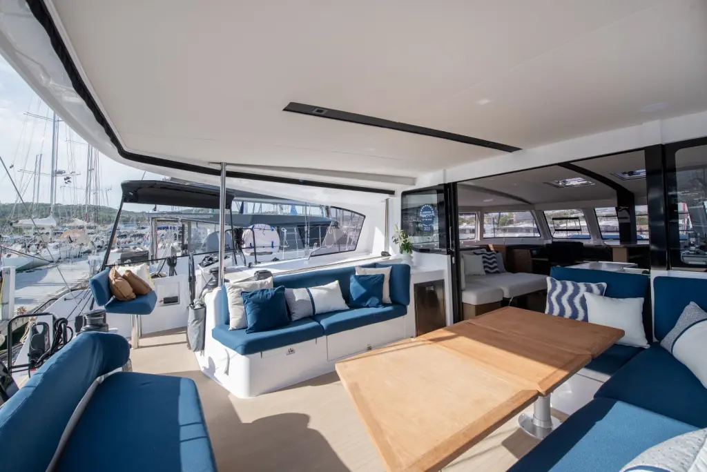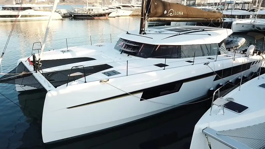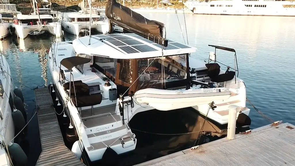 Яхтата Luna е модел Nautitech 48 Open произведена от Catamarans Nautitech през 2025. Тя е чудесен избор и се дава под наем от Olympic Marina в района на Гърция. Luna разполага с 4 каюти и е подходяща за до 7 гости, заедно с екипажа. Дължината и е 14.47 метра и гази 1.55 метра. Luna разполага с комерсиален лиценз и се оперира професионално от чартърната компания South Sea Sail .