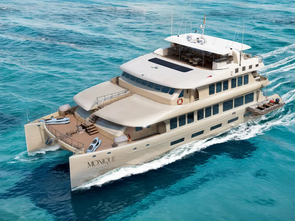 Яхтата Monique е модел Power Catamaran произведена от Custom Manufacturer през 0. Тя е чудесен избор и се дава под наем от Baltra в района на Ecuador. Monique разполага с 9 каюти и е подходяща за до 18 гости, заедно с екипажа. Дължината и е 42.06 метра и гази 2.44 метра. Monique разполага с комерсиален лиценз и се оперира професионално от чартърната компания GOLDEN GALAPAGOS.
