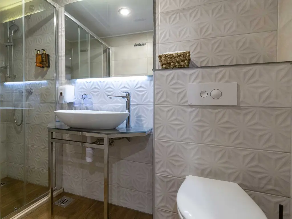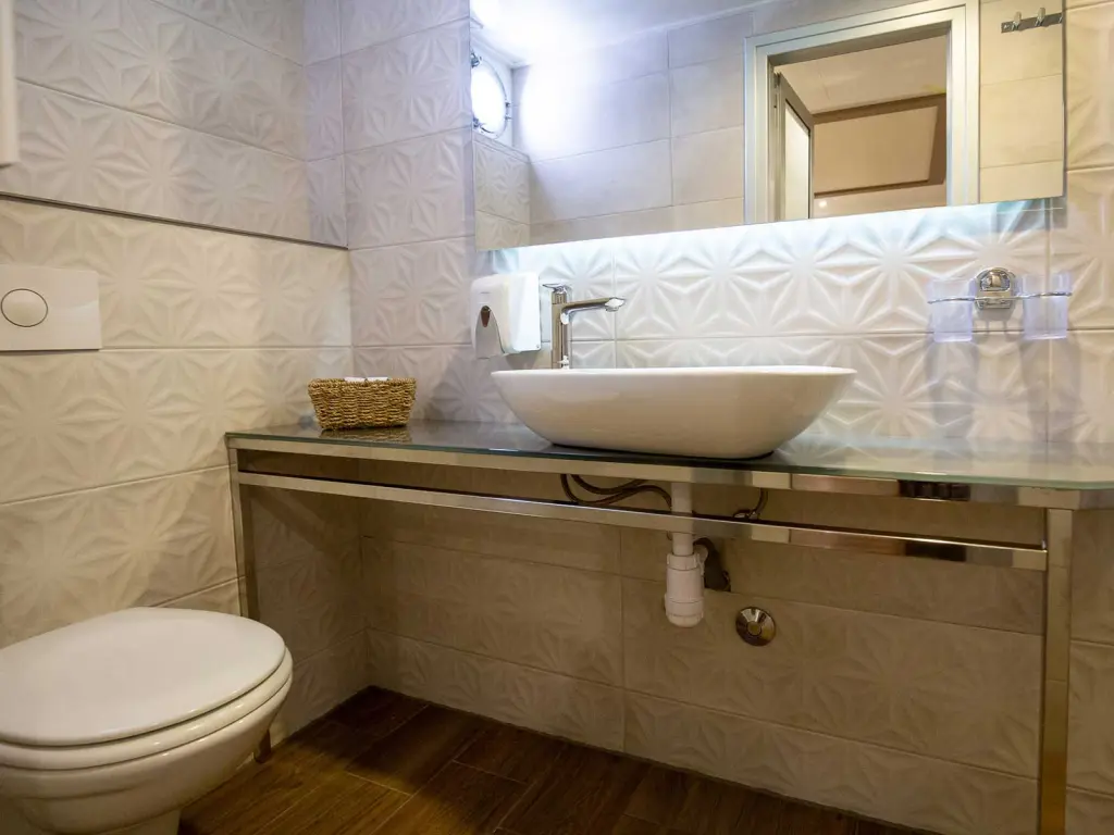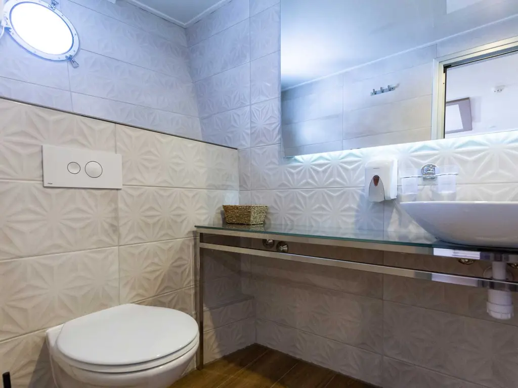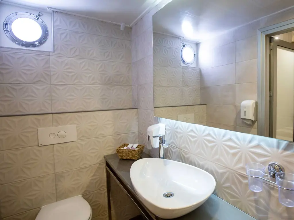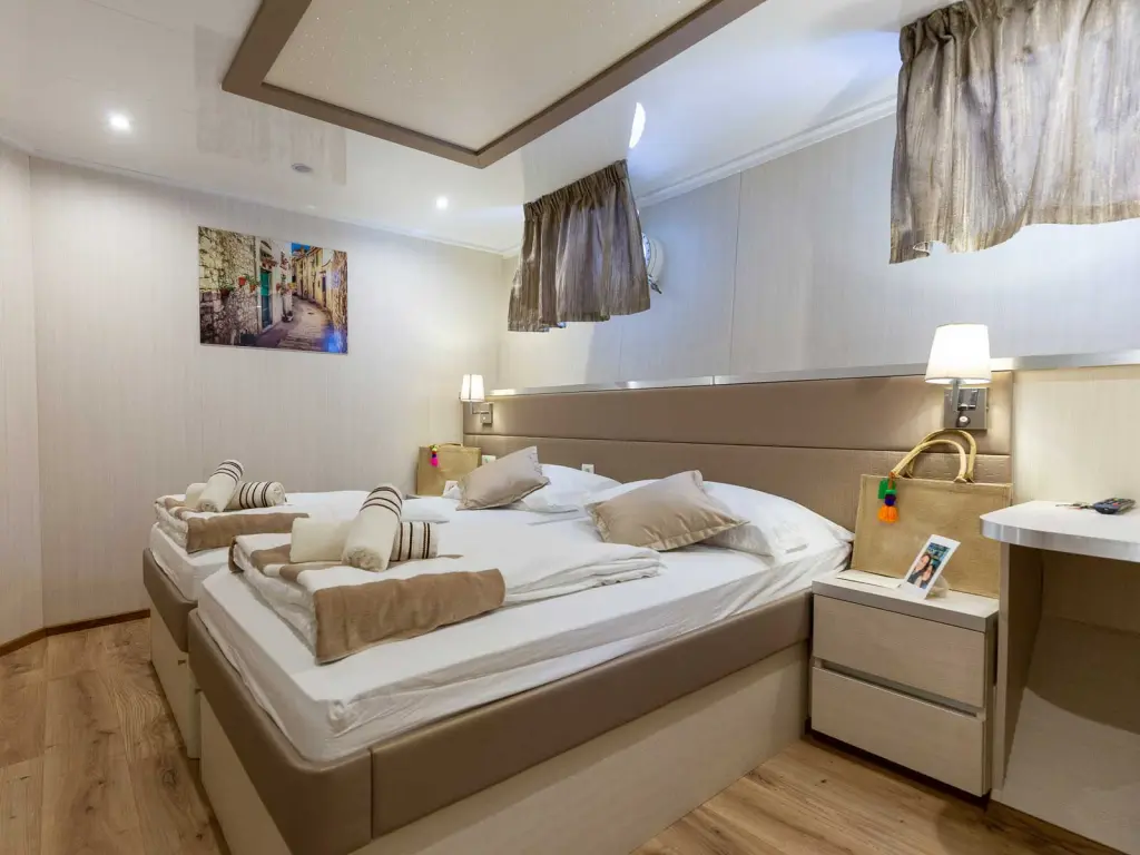 Air-conditioned cabins with private bathroom and TV