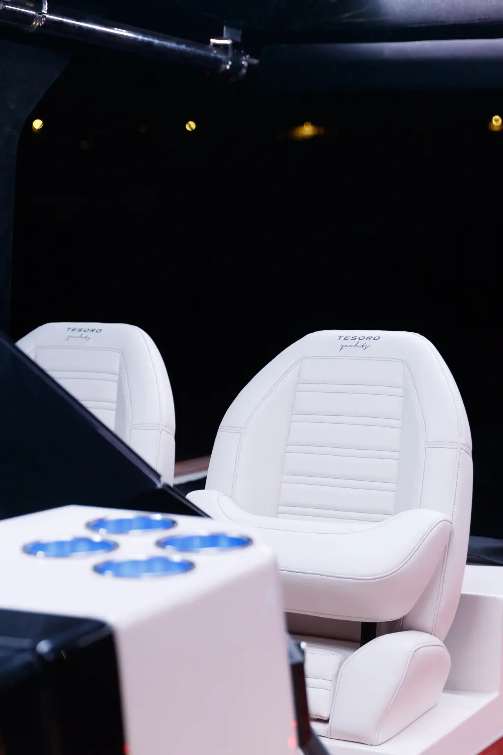 Folding table and chairs in cockpit