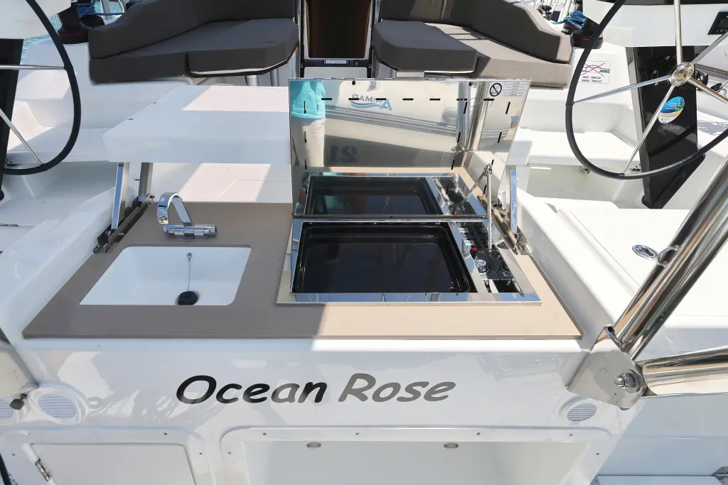 Яхтата Ocean Rose е модел Dufour 48 произведена от Dufour Yachts през 2025. Тя е чудесен избор и се дава под наем от Marina D-Marin Dalmacija в района на Хърватска. Ocean Rose разполага с 5 каюти и е подходяща за до 12 гости, заедно с екипажа. Дължината и е 15.29 метра и гази 1.8 метра. Ocean Rose разполага с комерсиален лиценз и се оперира професионално от чартърната компания Angelina Yachtcharter.