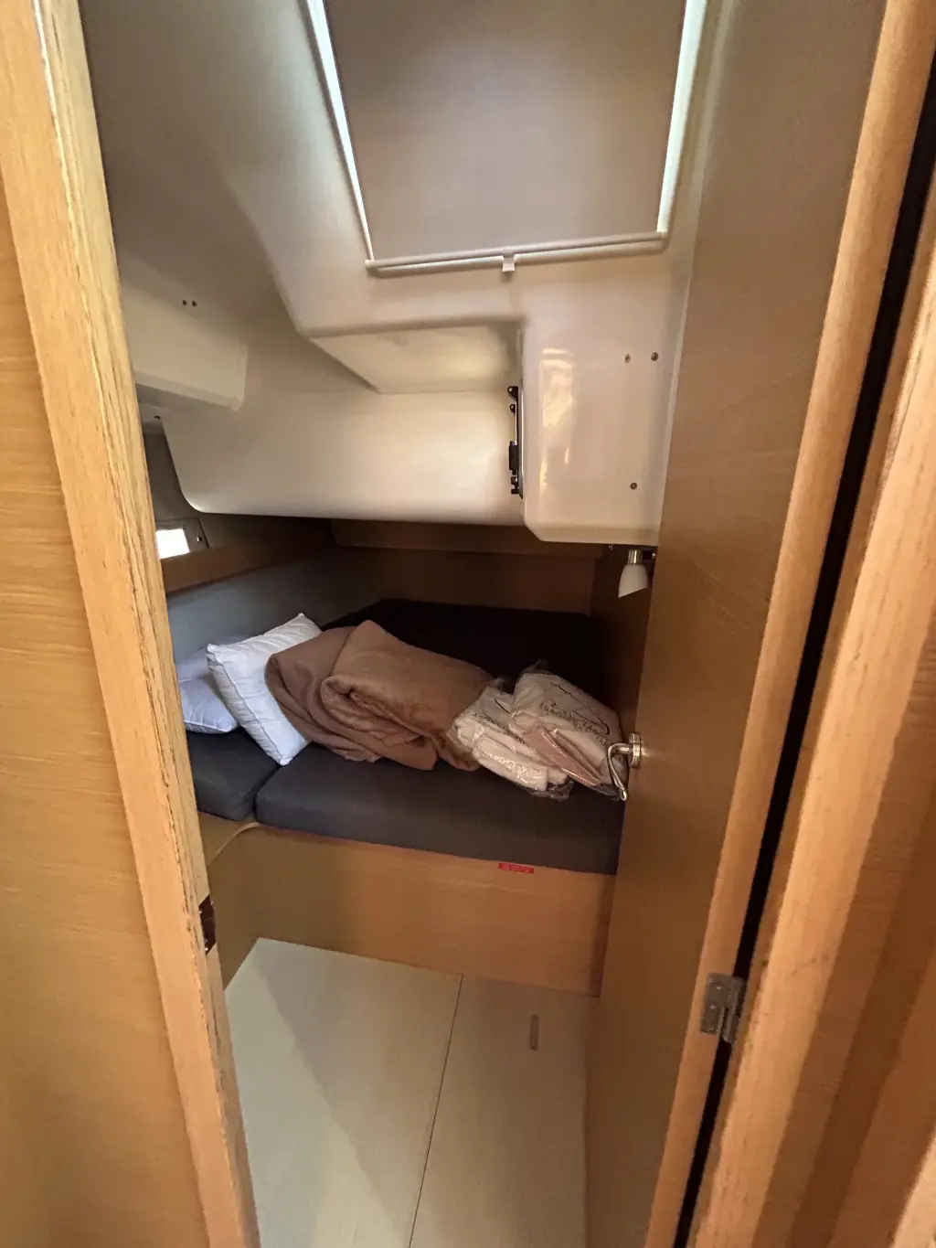 Folding saloon table with extra cushion for additional berth in saloon