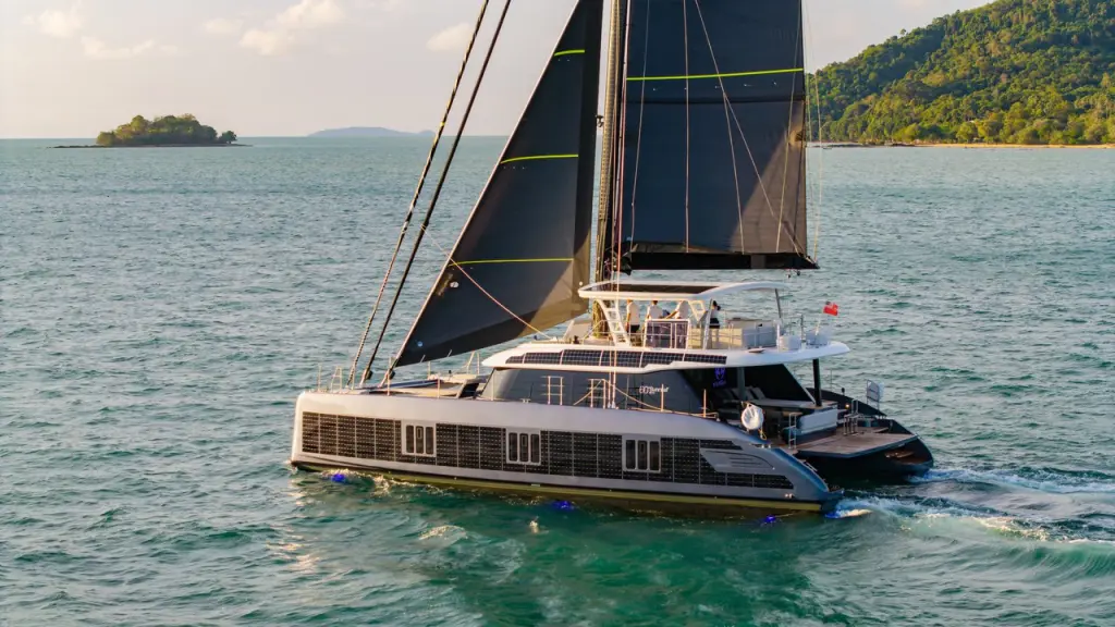 Die Yacht E-Motion ist ein Sunreef 60 E, das von Sunreef Yachts im 2025 hergestellt wurde. Sie ist eine gute Wahl und kann ab Royal Phuket Marina in der Thailand gemietet werden. E-Motion verfügt über 4 und ist für bis zu 8 inklusive Crew geeignet. Die Länge beträgt 18.3 und Tiefgang ist 1.8. E-Motion verfügt über eine kommerzielle Lizenz und wird professionell von der Charterfirma Boat in the Bay betrieben.