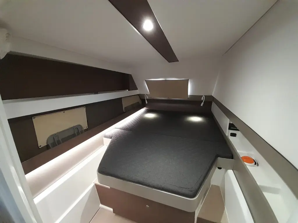 Additional top deck 2-person sun-bathing area with leatherette cushions