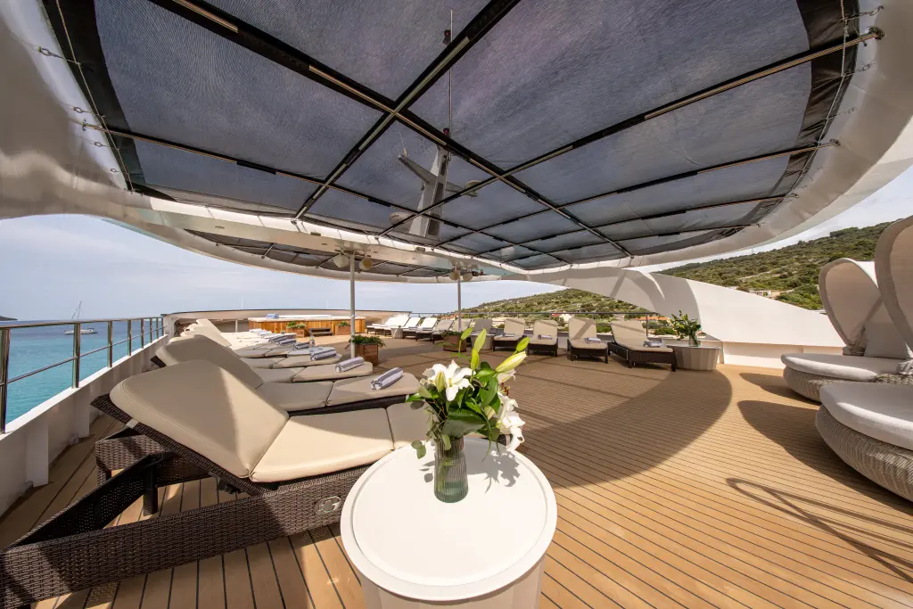 Karizma verfügt über 18 und ist für bis zu 36 inklusive Crew geeignet.
