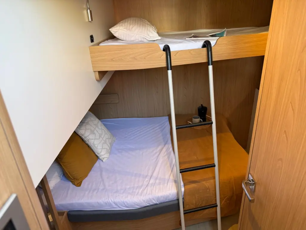 Libera verfügt über 6 und ist für bis zu 14 inklusive Crew geeignet.
