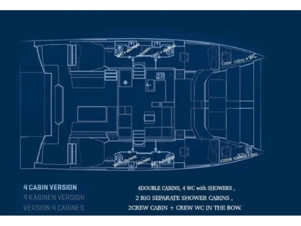 Shorepower system 230V with plugs in all cabins saloon and galley