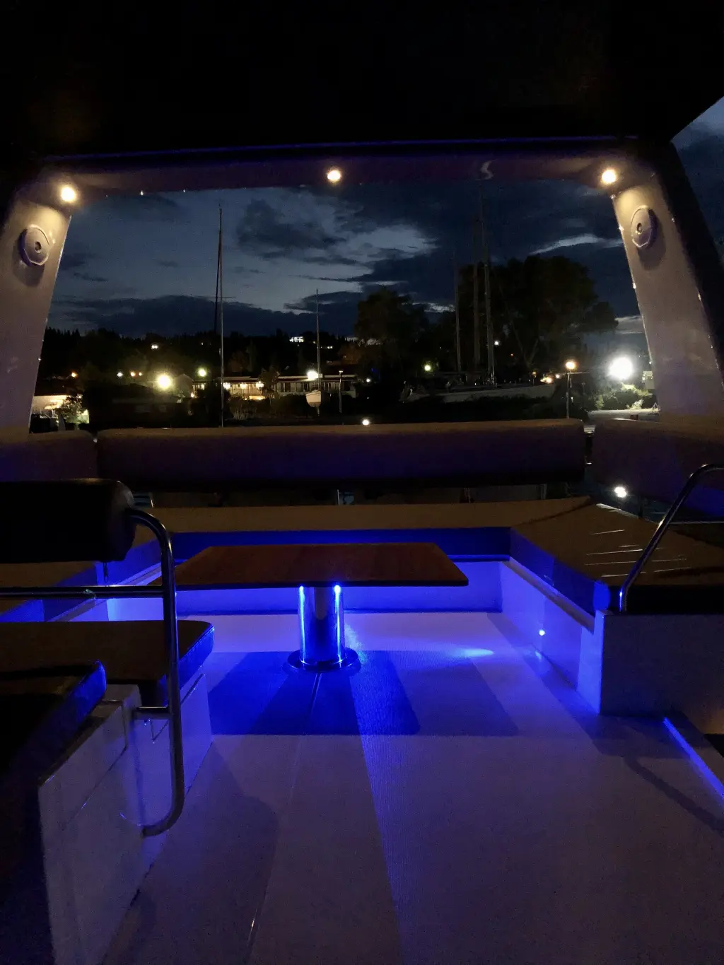 Blue courtesy LED lights in Cockpit, aftdeck and fly lounge areaBlue courtesy LED lights in Cockpit, aftdeck and fly lounge area