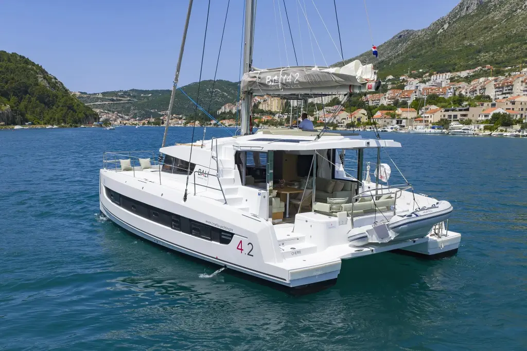 The yacht Chèrie is a model Bali 4.2 manufactured by Bali Catamarans in 2025. It is a perfect choice and is to be rented from ACI Marina Dubrovnik in the area of Croatia. Chèrie has 4 cabins and is suitable for up to 10 guests including the crew. Its length is 12.85 metres and the draught - 1.12 metres. Chèrie has the respective license and is operated professionally by the yacht charter company Croatia Yachting.