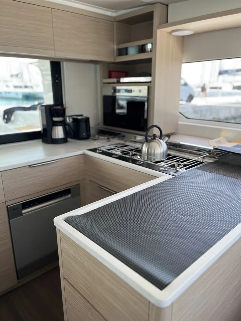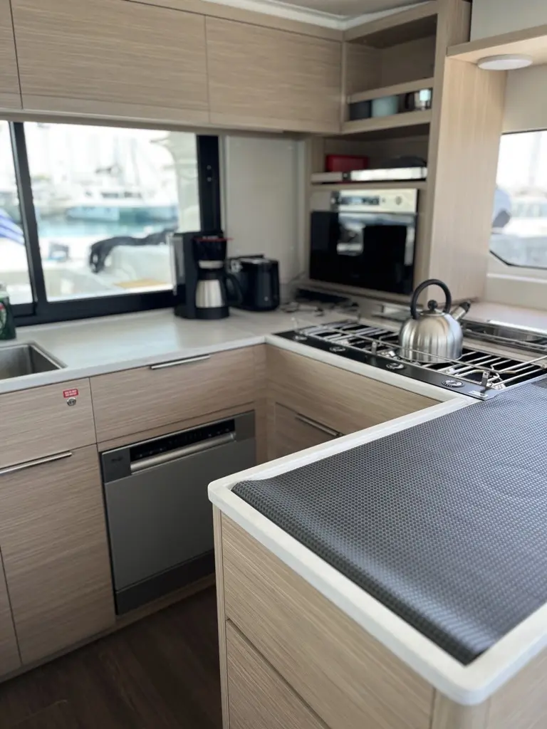 The yacht AELIA is a model Lagoon 46 manufactured by Lagoon in 2025. It is a perfect choice and is to be rented from Alimos Marina in the area of Greece. AELIA has 4 cabins and is suitable for up to 11 guests including the crew. Its length is 13.99 metres and the draught - 2.1 metres. AELIA has the respective license and is operated professionally by the yacht charter company Puresailing Yachting.