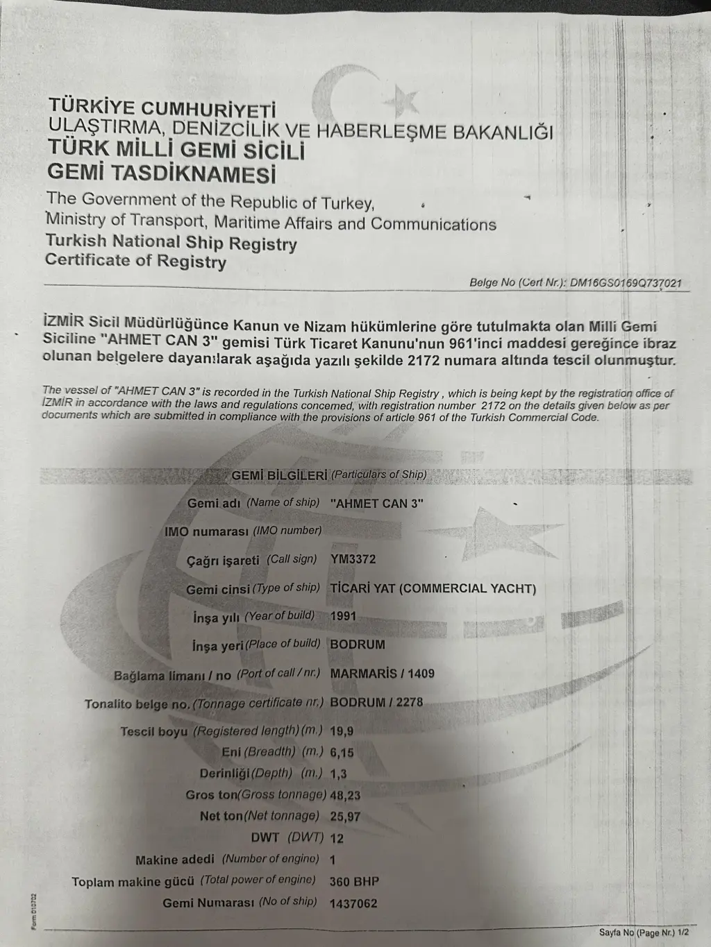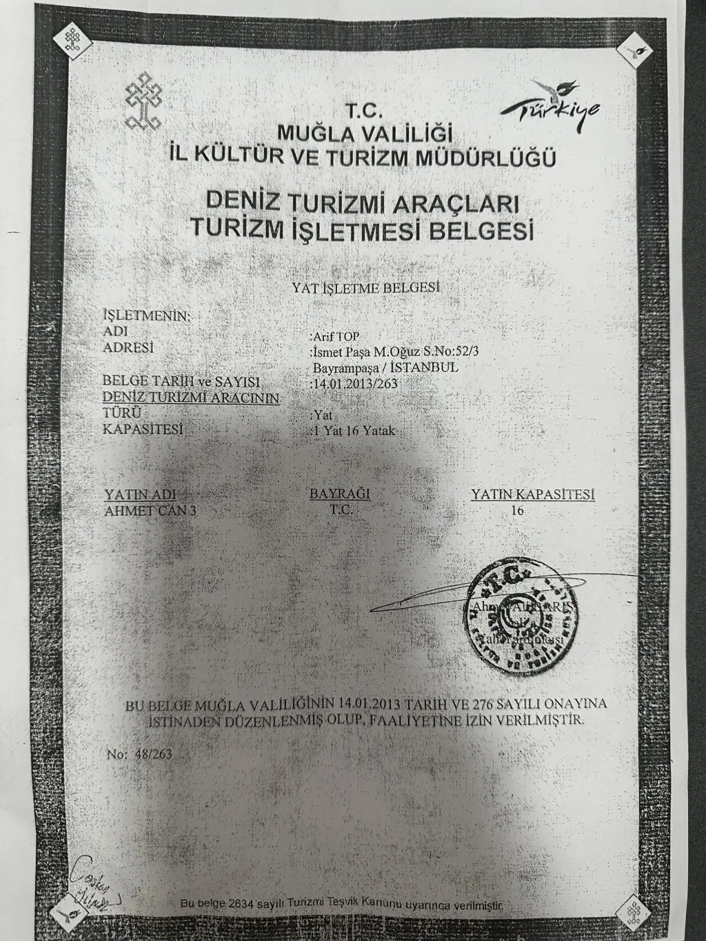 The yacht Ahmet CAN 3 is a model Gulet manufactured by Custom Manufacturer in 1991. It is a perfect choice and is to be rented from Fethiye port in the area of Turkey. Ahmet CAN 3 has 8 cabins and is suitable for up to 16 guests including the crew. Its length is 26 metres and the draught - 2.2 metres. Ahmet CAN 3 has the respective license and is operated professionally by the yacht charter company Ambassador Yachting.