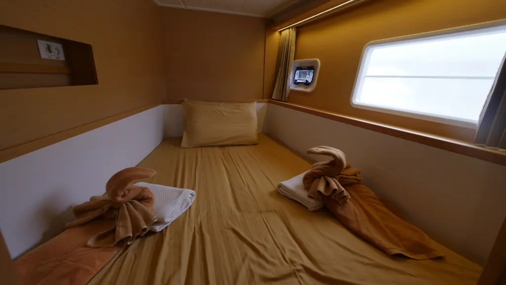 Anastasia has 5 cabins and is suitable for up to 10 guests including the crew.