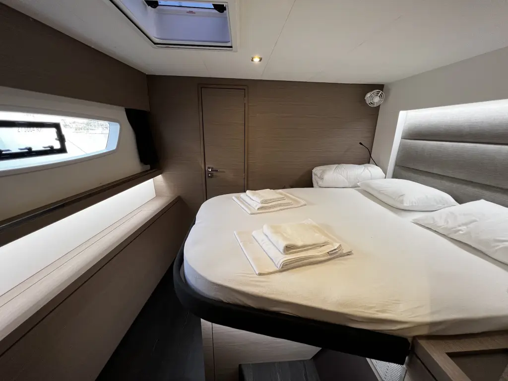 The yacht Andy is a model Tanna 47 manufactured by Fountaine Pajot in 2023. It is a perfect choice and is to be rented from Marina D-Marin Dalmacija in the area of Croatia. Andy has 6 cabins and is suitable for up to 12 guests including the crew. Its length is 13.94 metres and the draught - 1.2 metres. Andy has the respective license and is operated professionally by the yacht charter company Bemex Boot.
