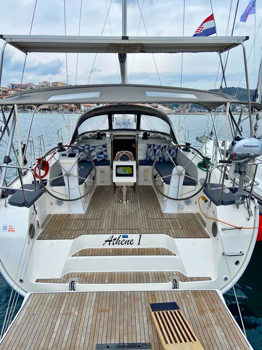The yacht Athene I is a model Bavaria Cruiser 46 manufactured by Bavaria Yachtbau in 2018. It is a perfect choice and is to be rented from Marina Frapa in the area of Croatia. Athene I has 4 cabins and is suitable for up to 9 guests including the crew. Its length is 14.27 metres and the draught - 2.18 metres. Athene I has the respective license and is operated professionally by the yacht charter company Sea and More Yachting.