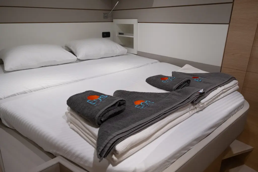 The yacht Aura is a model Aventura 45 manufactured by Aventura Catamarans in 2025. It is a perfect choice and is to be rented from Ece Marina in the area of Turkey. Aura has 6 cabins and is suitable for up to 12 guests including the crew. Its length is 13.53 metres and the draught - 1.4 metres. Aura has the respective license and is operated professionally by the yacht charter company EOS Yacht Charter.