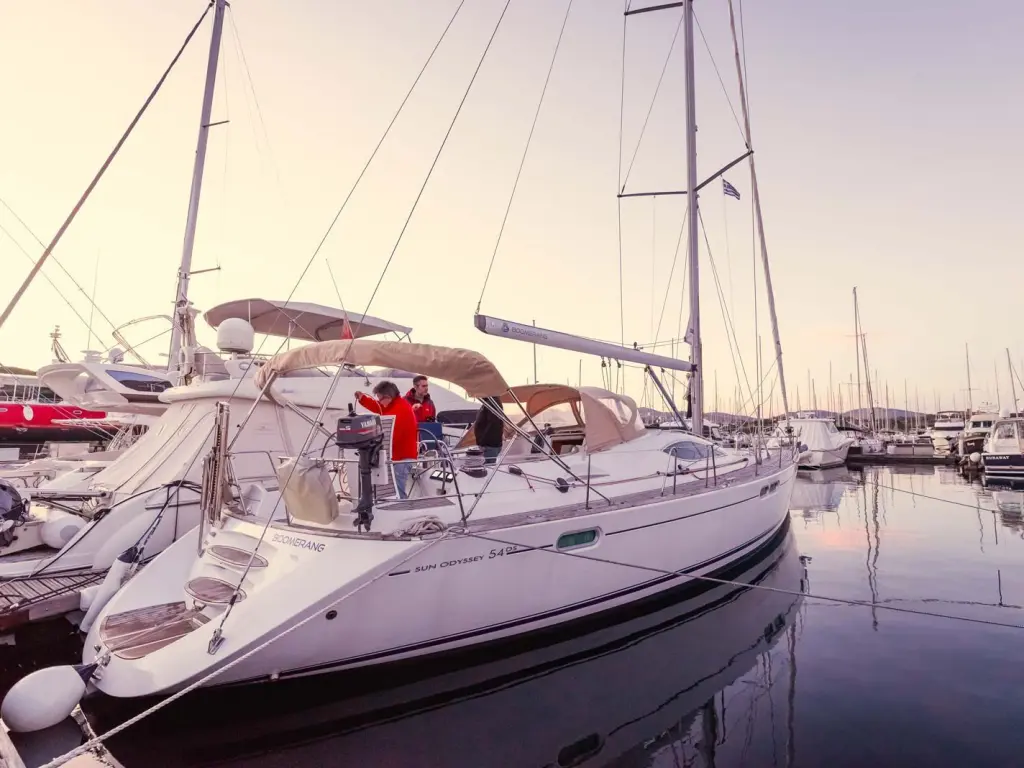 The yacht Boomerang is a model Sun Odyssey 54DS manufactured by Jeanneau in 2006. It is a perfect choice and is to be rented from Olympic Marina in the area of Greece. Boomerang has 5 cabins and is suitable for up to 10 guests including the crew. Its length is 16.75 metres and the draught - 2.3 metres. Boomerang has the respective license and is operated professionally by the yacht charter company Go Sail in Greece.