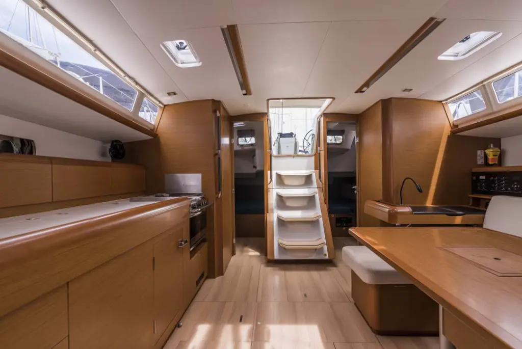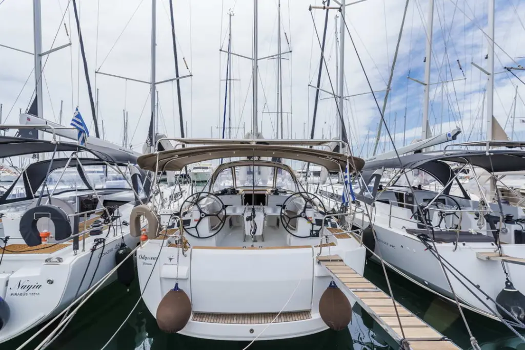 The yacht CL- 479-18-G is a model Sun Odyssey 479 manufactured by Jeanneau in 2018.