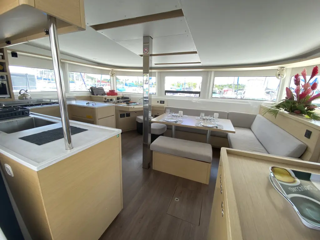 The yacht Dare 1 is a model Lagoon 46 manufactured by Lagoon in 2022. It is a perfect choice and is to be rented from Le Marin in the area of Martinique. Dare 1 has 4 cabins and is suitable for up to 8 guests including the crew. Its length is 13.99 metres and the draught - 1.3 metres. Dare 1 has the respective license and is operated professionally by the yacht charter company Sea Caline.
