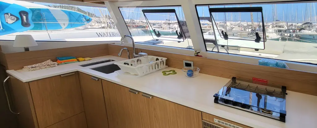 The yacht Dolce Luna is a model Bali Catsmart manufactured by Bali Catamarans in 2026. It is a perfect choice and is to be rented from Mare Fun Marina in the area of Italy. Dolce Luna has 4 cabins and is suitable for up to 8 guests including the crew. Its length is 11.78 metres and the draught - 1.1 metres. Dolce Luna has the respective license and is operated professionally by the yacht charter company MadMax Franchising Nautico.