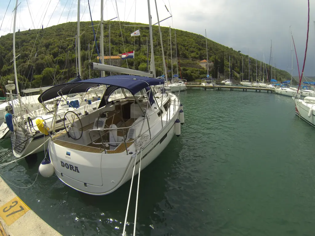 The yacht Dora is a model Bavaria Cruiser 37 manufactured by Bavaria Yachtbau in 2014.
