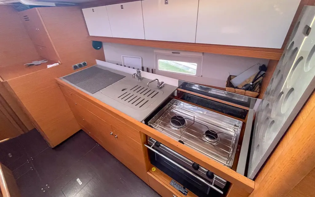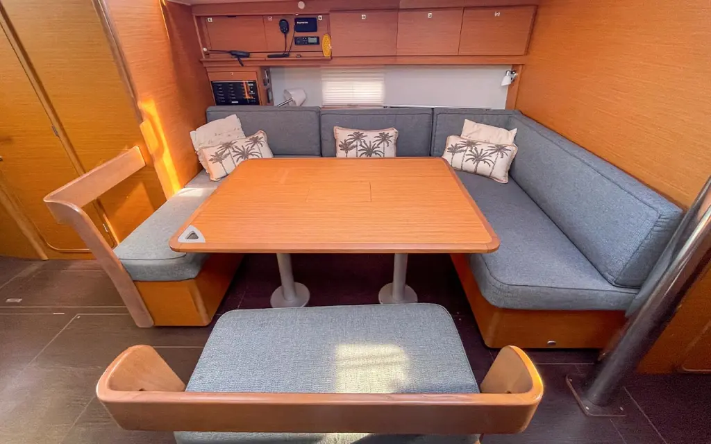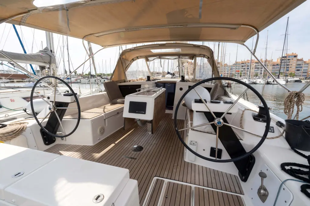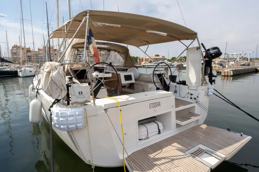The yacht Etosha is a model Dufour 430 manufactured by Dufour Yachts in 2022. It is a perfect choice and is to be rented from Hyeres in the area of France. Etosha has 4 cabins and is suitable for up to 8 guests including the crew. Its length is 13.24 metres and the draught - 2.1 metres. Etosha has the respective license and is operated professionally by the yacht charter company Philisa Location.