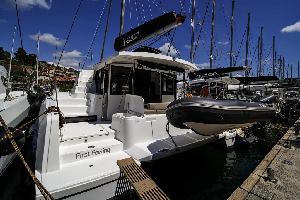 The yacht First Feeling is a model Bali 4.2 manufactured by Bali Catamarans in 2024. It is a perfect choice and is to be rented from ACI Marina Skradin in the area of Croatia. First Feeling has 5 cabins and is suitable for up to 10 guests including the crew. Its length is 12.85 metres and the draught - 1.12 metres. First Feeling has the respective license and is operated professionally by the yacht charter company Istion Yachting.
