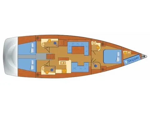 Only bookable with a permanent skipper for 1400 Euro per week + free board and own cabin. 1000 Euro advance payment for the board fund.