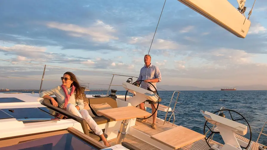 Teak on helm seats, folding helm seats, electric halyard winches and sheet winches