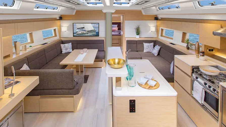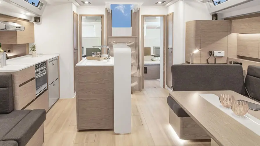 Dyneema halyards, T-keel, floor lighting in cockpit and saloon