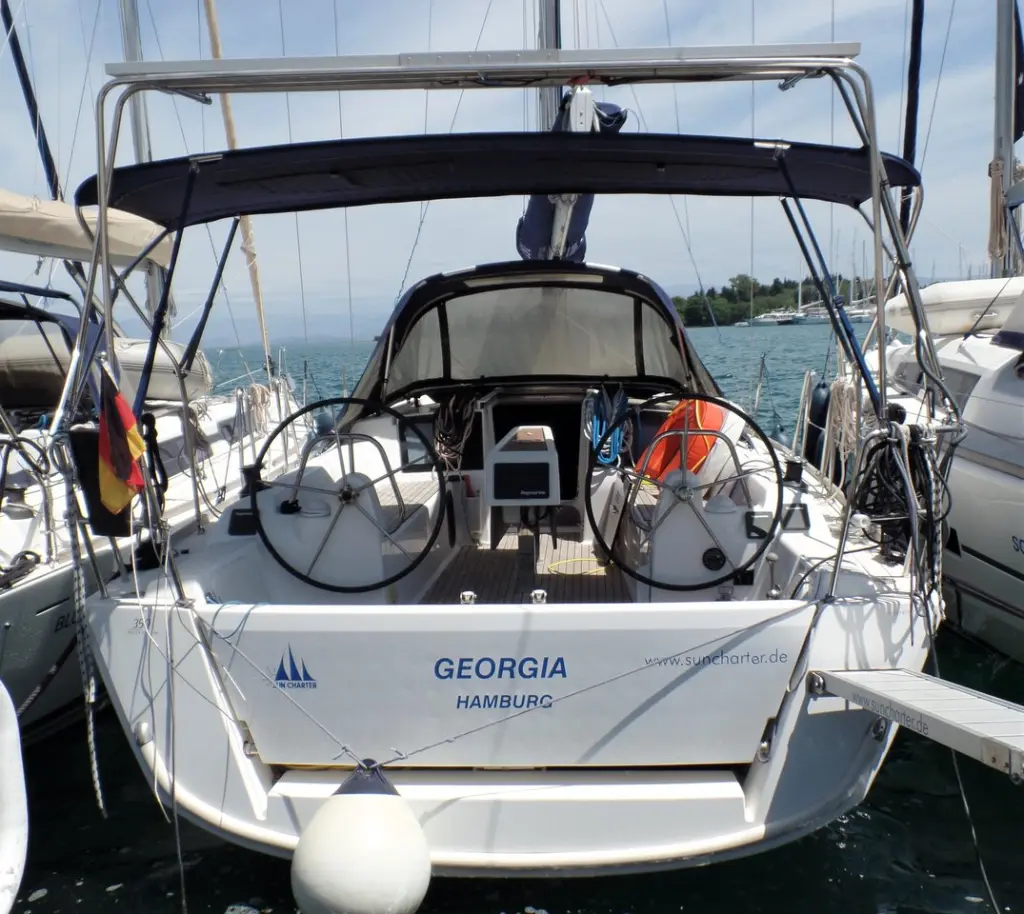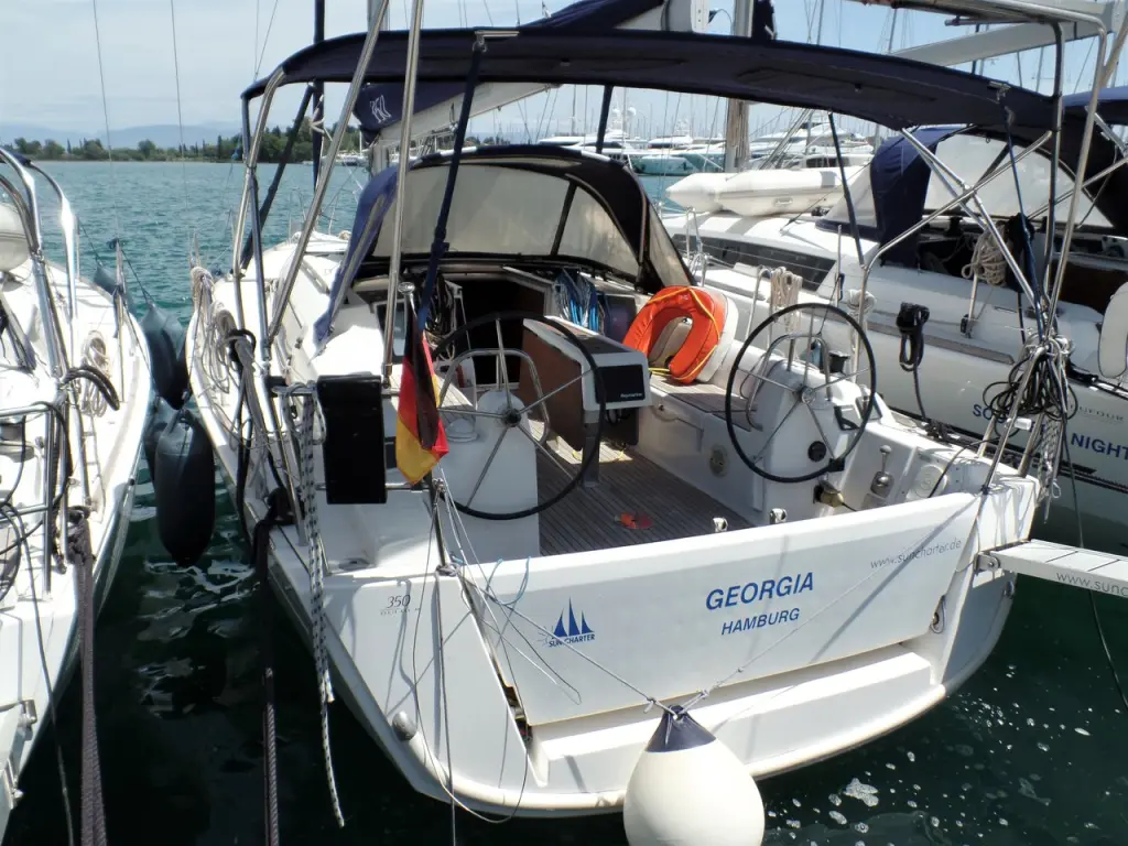 The yacht Georgia is a model Dufour 350 Grand Large manufactured by Dufour Yachts in 2017. It is a perfect choice and is to be rented from Marina Gouvia in the area of Greece. Georgia has 3 cabins and is suitable for up to 6 guests including the crew. Its length is 10.28 metres and the draught - 1.9 metres. Georgia has the respective license and is operated professionally by the yacht charter company Sun Charter - Nautic Alliance.