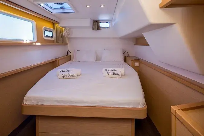 The yacht Gin Tonic is a model Lagoon 450 Fly manufactured by Lagoon in 2016. It is a perfect choice and is to be rented from Marina Perigiali in the area of Greece. Gin Tonic has 6 cabins and is suitable for up to 12 guests including the crew. Its length is 13.96 metres and the draught - 1.25 metres. Gin Tonic has the respective license and is operated professionally by the yacht charter company Hellenic Yachting.
