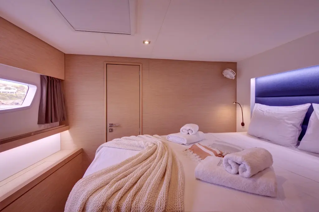 The yacht Helidoni is a model Tanna 47 manufactured by Fountaine Pajot in 2024. It is a perfect choice and is to be rented from Volos in the area of Greece. Helidoni has 6 cabins and is suitable for up to 8 guests including the crew. Its length is 13.94 metres and the draught - 1.2 metres. Helidoni has the respective license and is operated professionally by the yacht charter company Fyly Yachting.