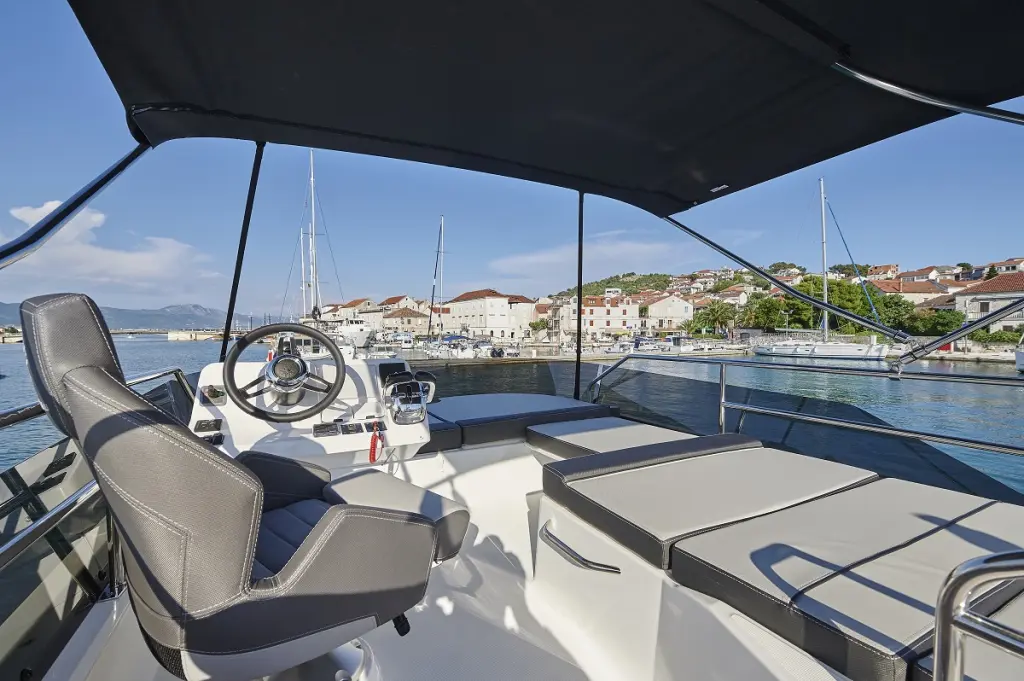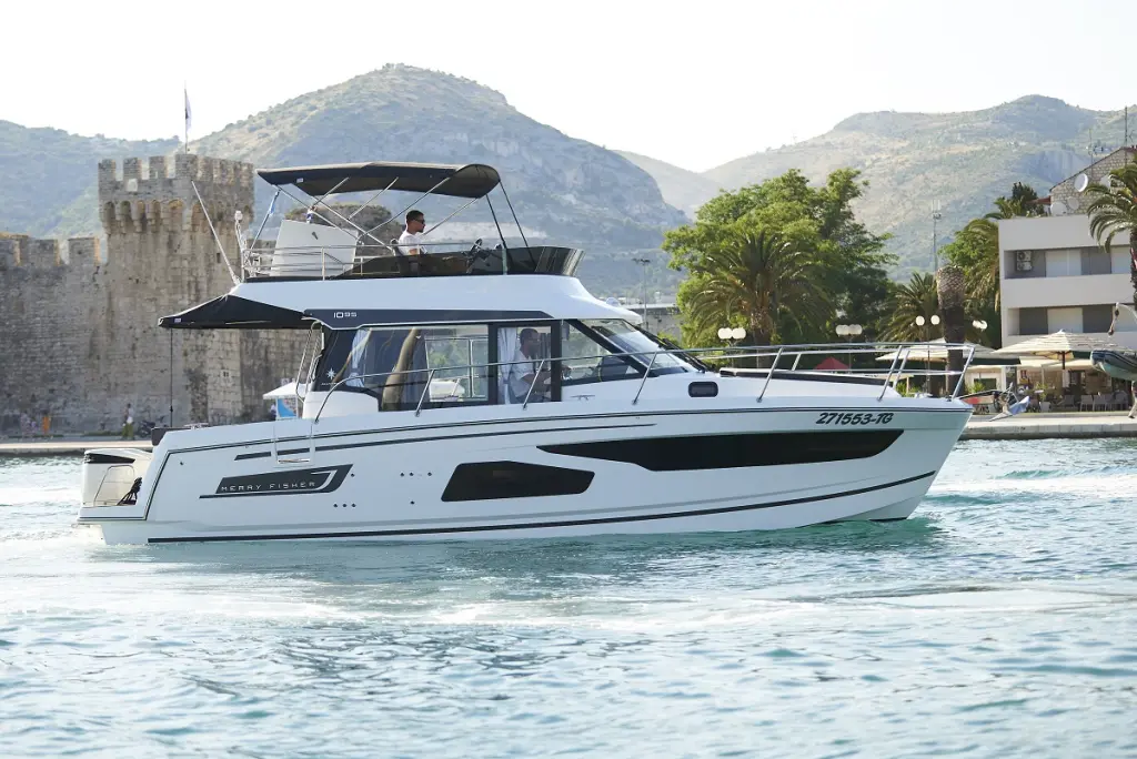 The yacht Jeanneau Merry Fisher 1095 Fly is a model Merry Fisher 1095 FLY manufactured by Jeanneau in 2021. It is a perfect choice and is to be rented from ACI Marina Trogir in the area of Croatia. Jeanneau Merry Fisher 1095 Fly has 3 cabins and is suitable for up to 8 guests including the crew. Its length is 10.5 metres and the draught - 0.69 metres. Jeanneau Merry Fisher 1095 Fly has the respective license and is operated professionally by the yacht charter company Blue Nautica.