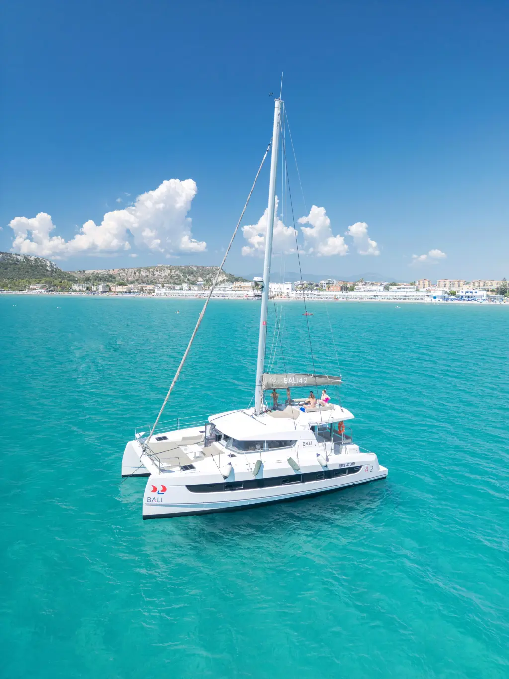 The yacht JUST 42 is a model Bali 4.2 manufactured by Bali Catamarans in 2022. It is a perfect choice and is to be rented from Cagliari in the area of Italy. JUST 42 has 3 cabins and is suitable for up to 4 guests including the crew. Its length is 12.85 metres and the draught - 1.12 metres. JUST 42 has the respective license and is operated professionally by the yacht charter company Cagliari Sailing Charter.