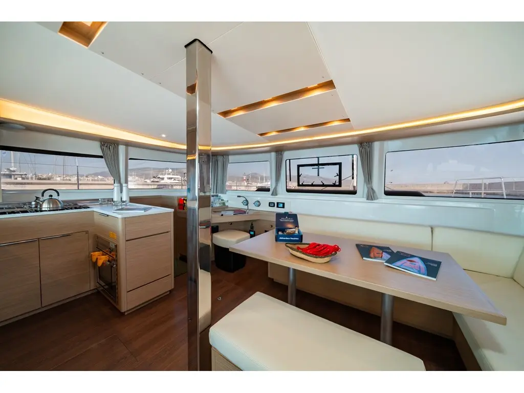 The yacht KARALIS is a model Lagoon 46 manufactured by Lagoon in 2024. It is a perfect choice and is to be rented from Alimos Marina in the area of Greece. KARALIS has 4 cabins and is suitable for up to 12 guests including the crew. Its length is 13.99 metres and the draught - 1.3 metres. KARALIS has the respective license and is operated professionally by the yacht charter company Athenian Yachts.