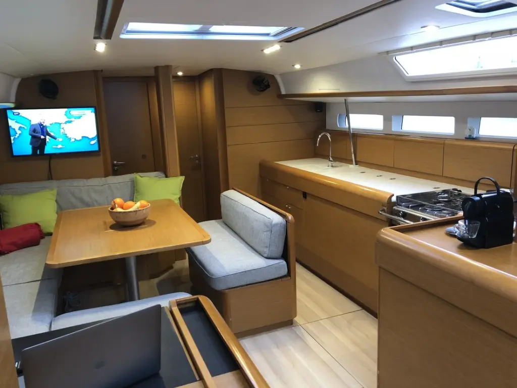 The yacht Kon Tiki is a model Sun Odyssey 519 manufactured by Jeanneau in 2016. It is a perfect choice and is to be rented from Alimos Marina in the area of Greece. Kon Tiki has 5 cabins and is suitable for up to 12 guests including the crew. Its length is 15.75 metres and the draught - 1.73 metres. Kon Tiki has the respective license and is operated professionally by the yacht charter company SailGreece.