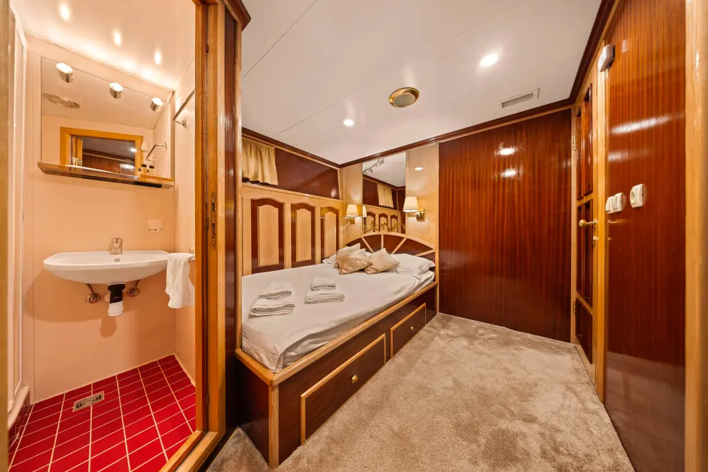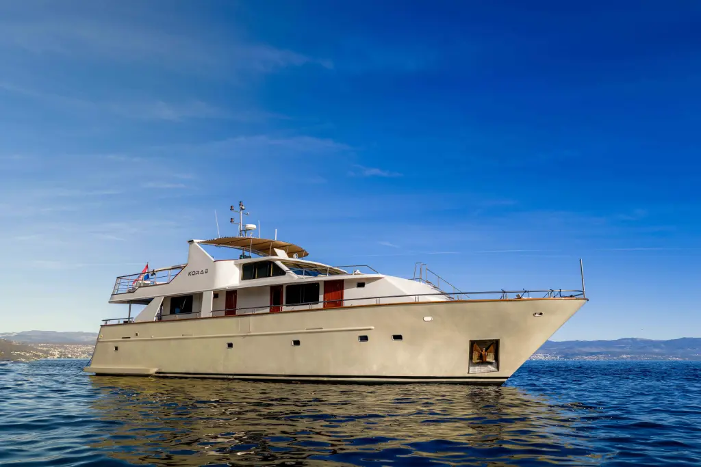 The yacht Korab is a model Motoryacht manufactured by Custom Manufacturer in 2002. It is a perfect choice and is to be rented from Rijeka in the area of Croatia. Korab has 6 cabins and is suitable for up to 12 guests including the crew. Its length is 25.5 metres and the draught - 2.1 metres. Korab has the respective license and is operated professionally by the yacht charter company Goolets.