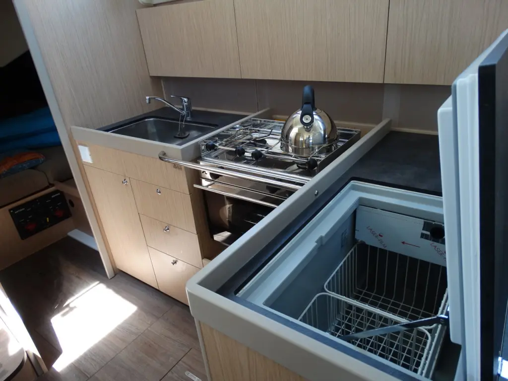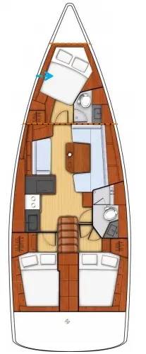 Kos 41.7 has 3 cabins and is suitable for up to 8 guests including the crew.