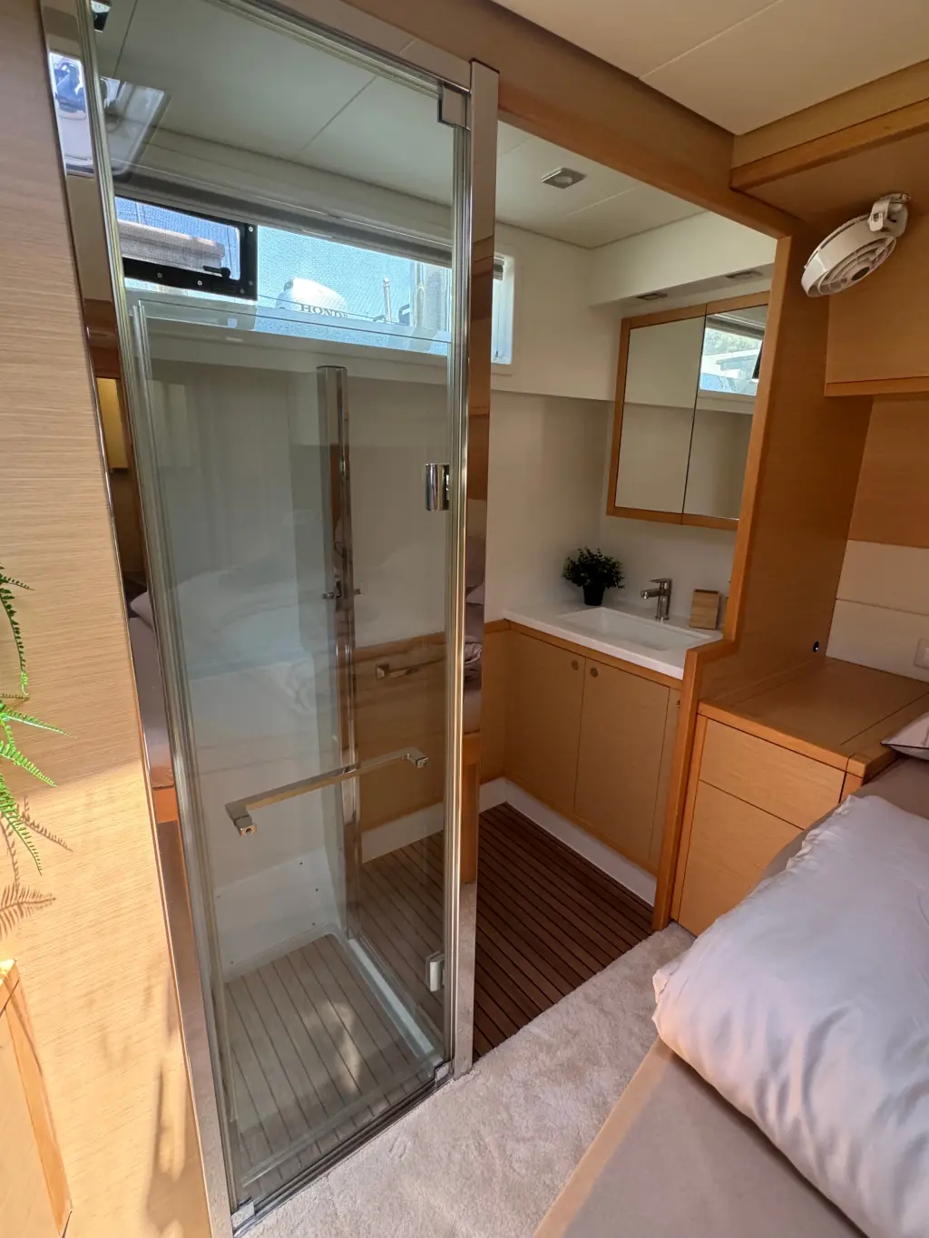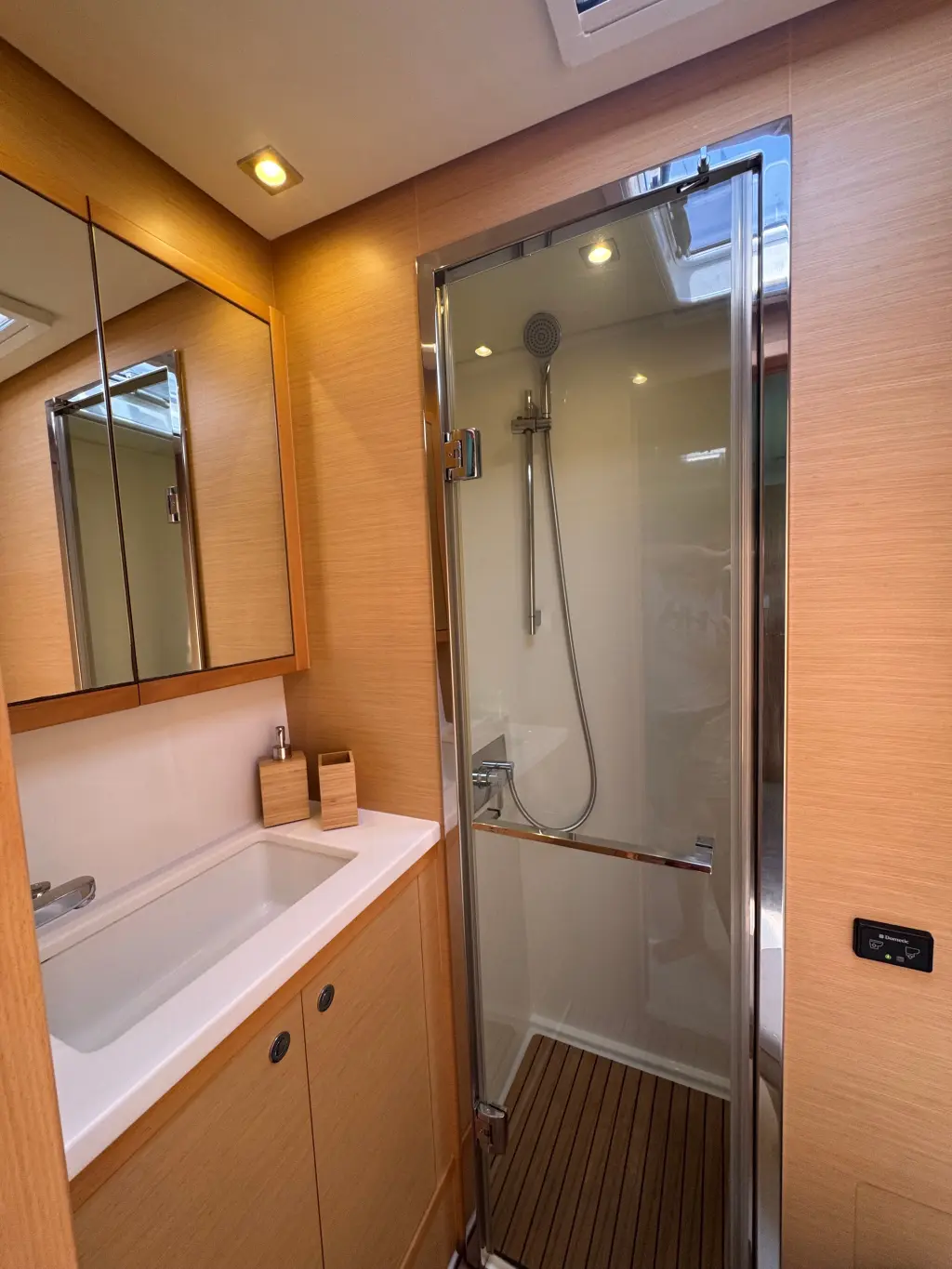 Cockpit/stern outside shower with hot and cold water