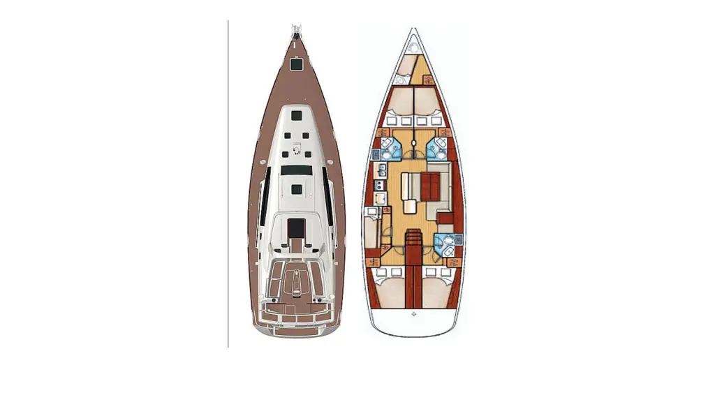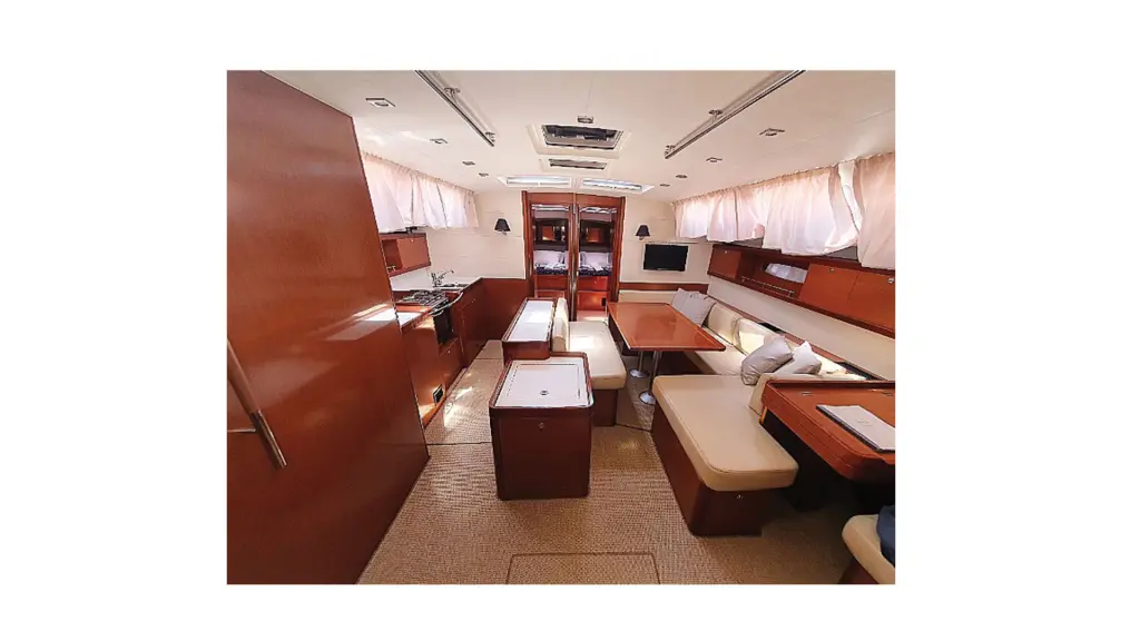 Oceanis 50 has 6 cabins and is suitable for up to 12 guests including the crew.