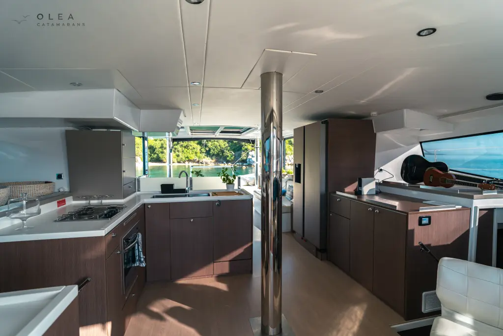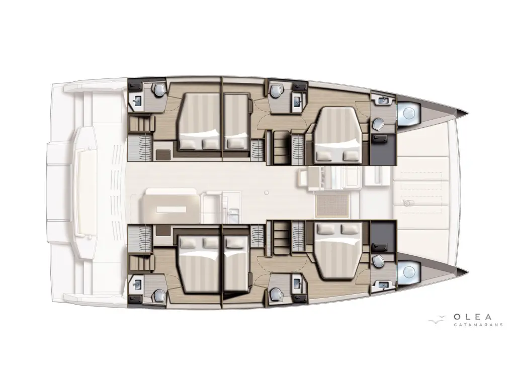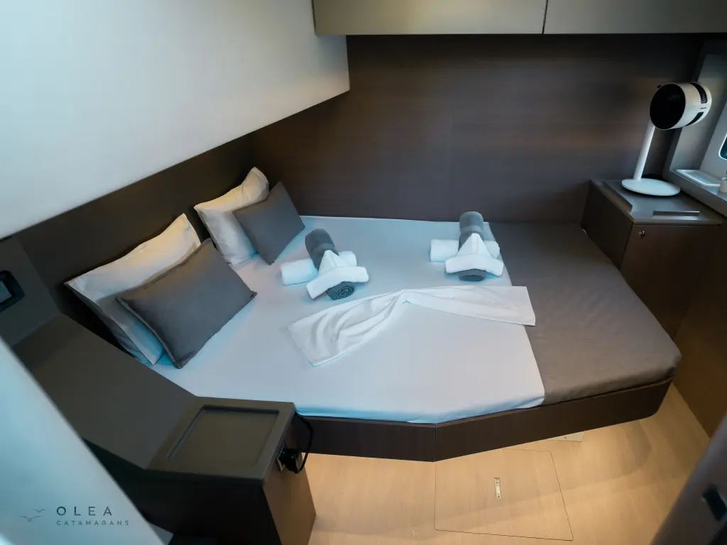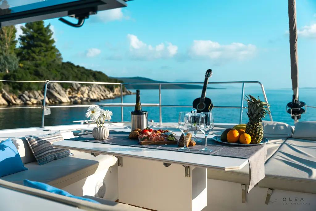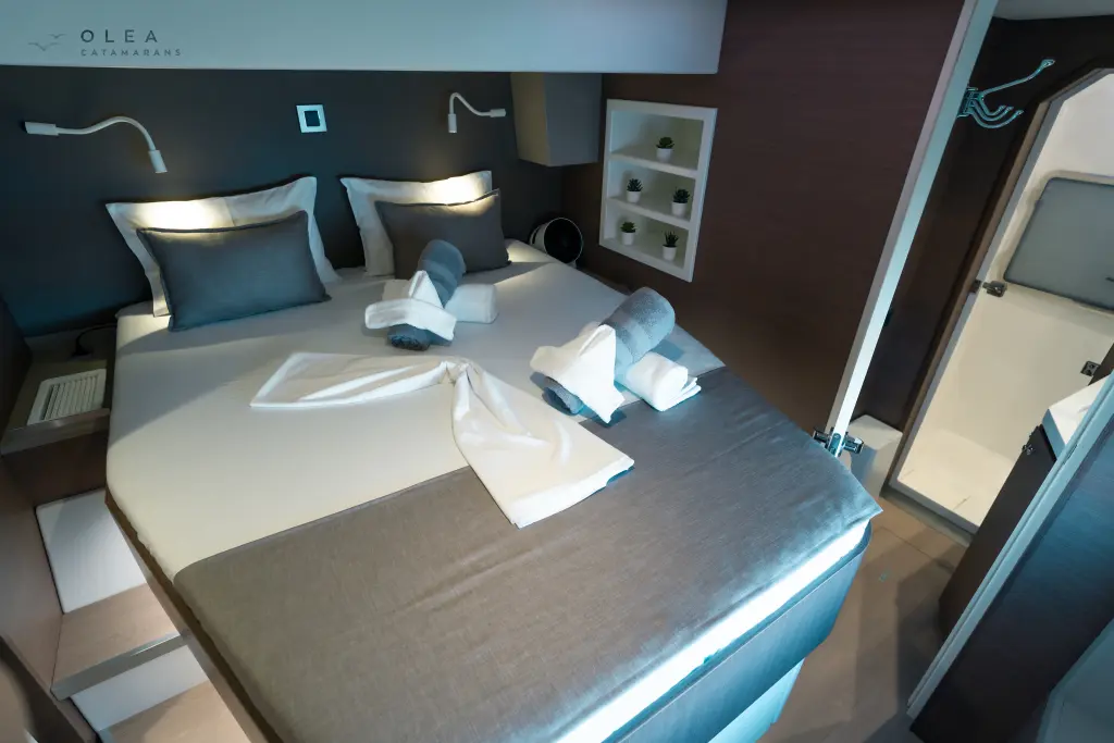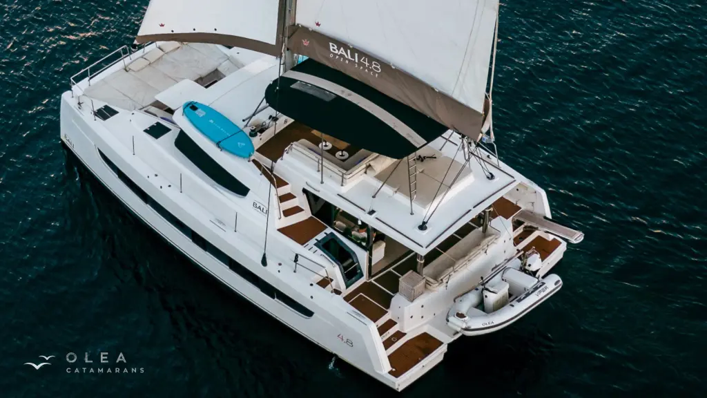 The yacht Olea Crewed Elegant Pack is a model Bali 4.8 manufactured by Bali Catamarans in 2020. It is a perfect choice and is to be rented from Port of Lefkas in the area of Greece. Olea Crewed Elegant Pack has 6 cabins and is suitable for up to 12 guests including the crew. Its length is 14.82 metres and the draught - 1.35 metres. Olea Crewed Elegant Pack has the respective license and is operated professionally by the yacht charter company Sail42.