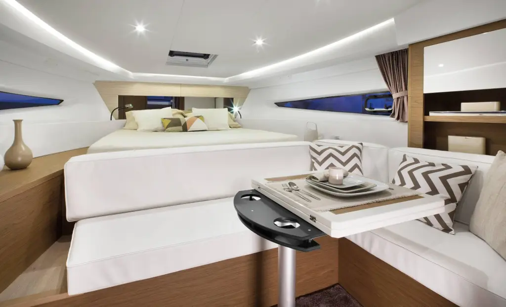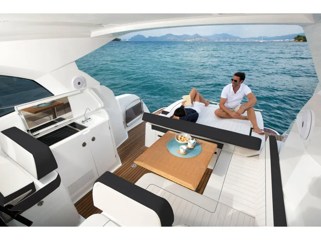 The yacht Partenope is a model Leader 36 manufactured by Jeanneau in 2021.
